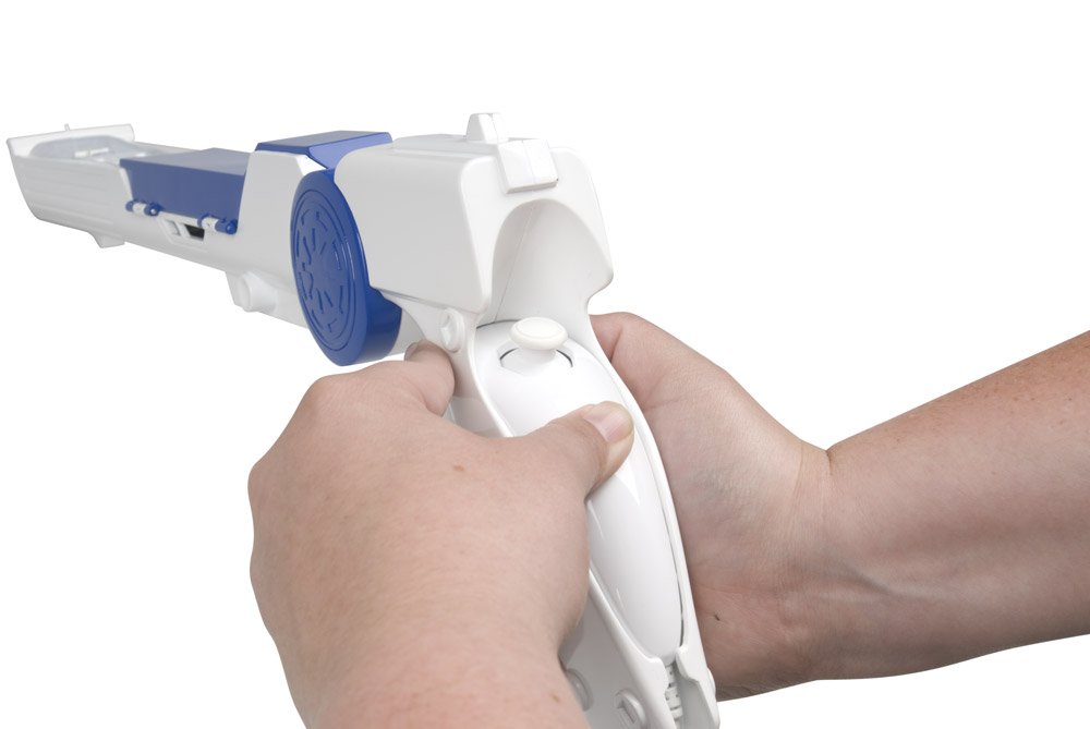 Fight for the future of the galaxy with the Wii Clone Trooper Blaster! Specially designed for use with Star Wars The Clone Wars: Republic Heroes game, which shoots using the Z-button triggered by the Blaster! The Wii Remote and Nunchuk fit in easily and the dual-trigger design offers blasting action from both. A bonus sticker set lets you customize the Blaster and create a realistic look, including authentic battle damage and win count. Pair with POWER A’s Official Star Wars Light-Up Lightsabers for an unbeatable gaming experience! The Clone Trooper Blaster is an authentic Star Wars item Officially Licensed by Nintendo and LucasFilm Ltd., brought to you by POWER A. Wii Remote and Nunchuk sold separately.